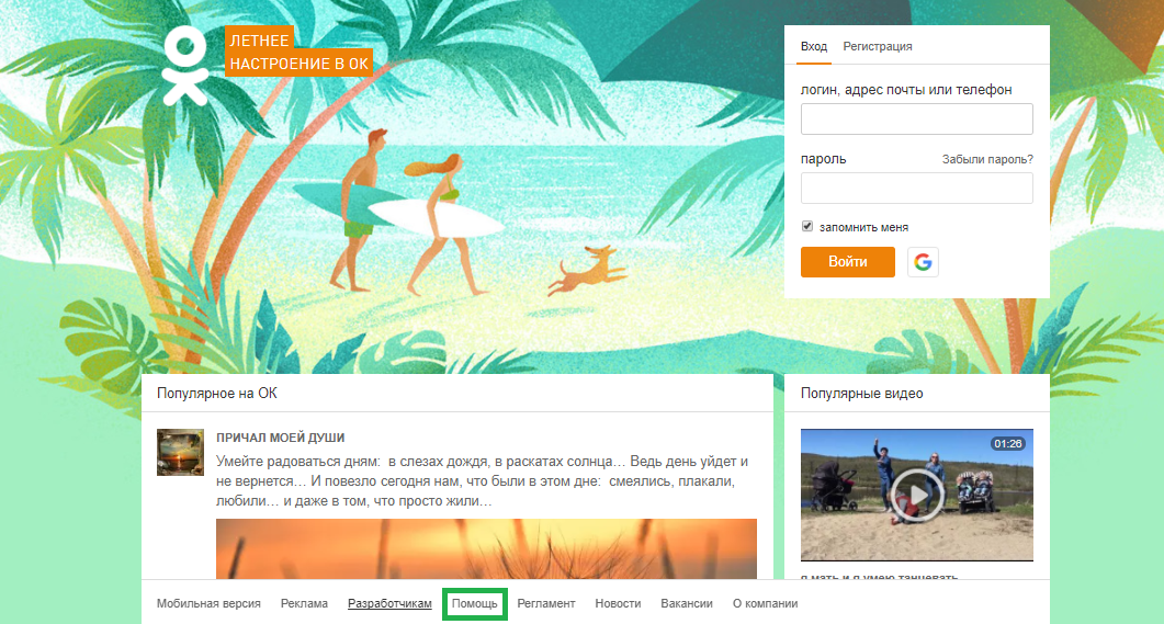 Если вдруг при входе на сайт Вы увидели сообщение о том, что аккаунт заблокирован за нарушение правил пользования сайтом, не спешите расстраиваться. Если Вы не нарушали лицензионное соглашение намеренно, ситуацию можно исправить. Для этого Вам необходимо обратиться в Службу поддержки. На странице входа найдите опцию «Помощь».