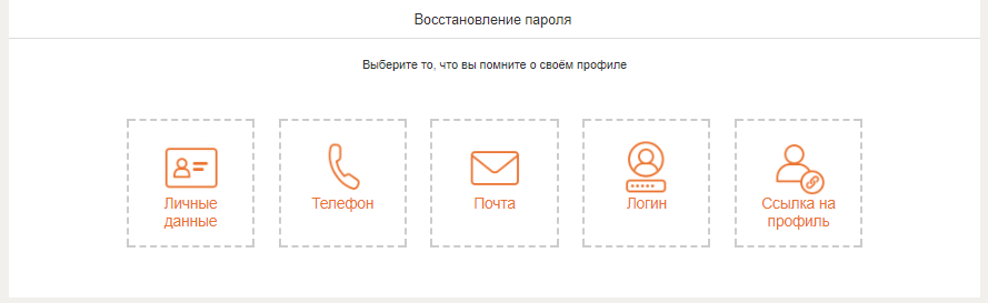 Выберите пункт, который Вы помните о своем профиле. Тут можно указать имя и фамилию, номер телефона, электронную почту и другие данные.