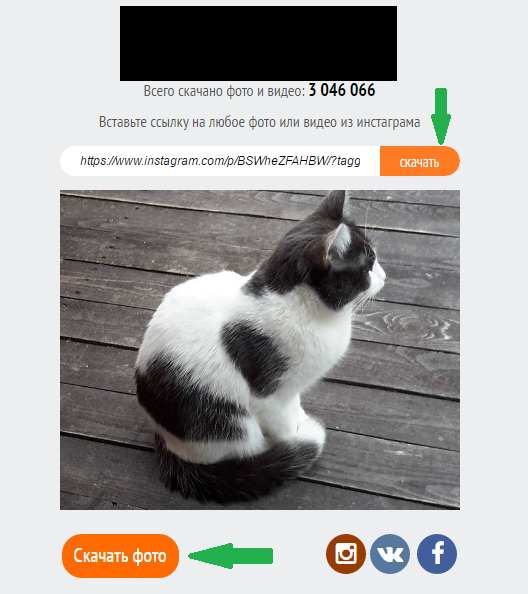 Если же Вам нужно загрузить фотографию из чужого профиля, первый способ не подойдет. Для этих целей существует другой вариант. Есть множество сервисов и приложений, благодаря которым можно с легкостью сохранить изображение, воспользовавшись прямой ссылкой. Для скачивания фото на ПК подойдет ресурс Инстаграб, а для смартфонов есть приложение InstaSave. Зачастую это выглядит следующим образом: